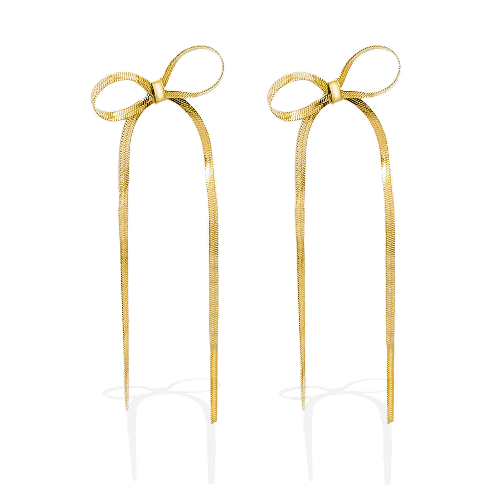 Say hello to your new favourite pair of earrings! Our Bow Drop Earrings in gold are the perfect blend of sweet and sassy. The dainty bows dangle and sway with every move, adding a touch of playful charm to your outfit.